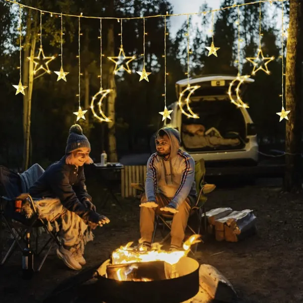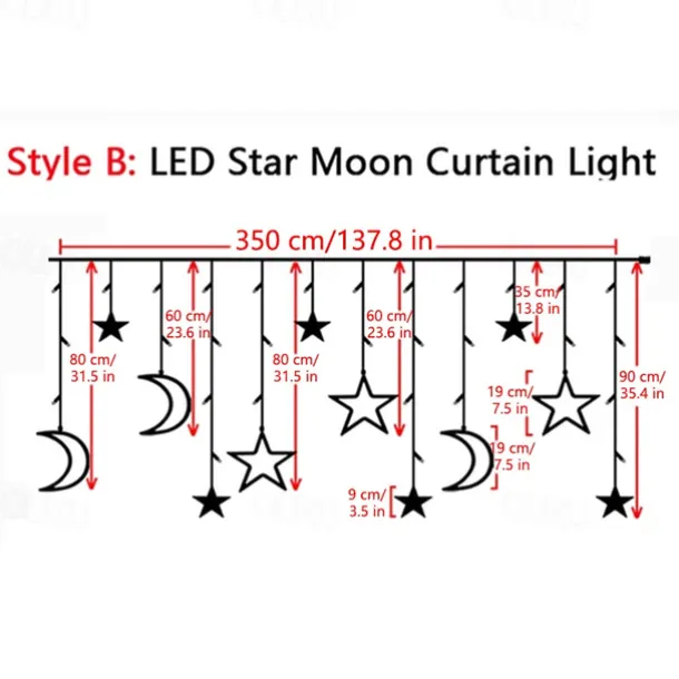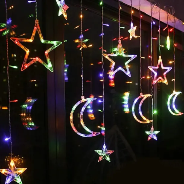 Ramadan Festival Light with Remote Control 3.5m 120LEDs Star Moon Curtain Light 8 Modes Wedding Birthday Party Outdoor Waterproof Tent Bedroom Living Room Balcony Garden Decorative Light
