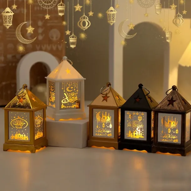 Ramadan Handheld Lanterns Candlesticks Wind Lamps Electronic Candles Festive Decorations Atmosphere Props 1PC