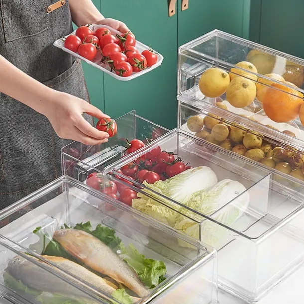 – Creates more space in the fridge, pantry, cabinet, and closet