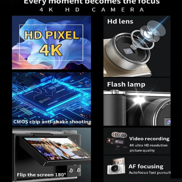 Retro Fashion 64 Megapixel Digital Camera 4K HD CMOS lens HD Wide-Angle Shooting Camera Optional Angle Lens