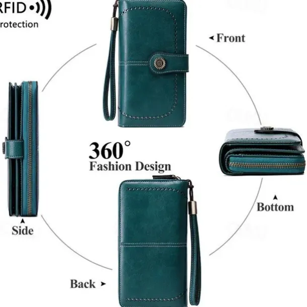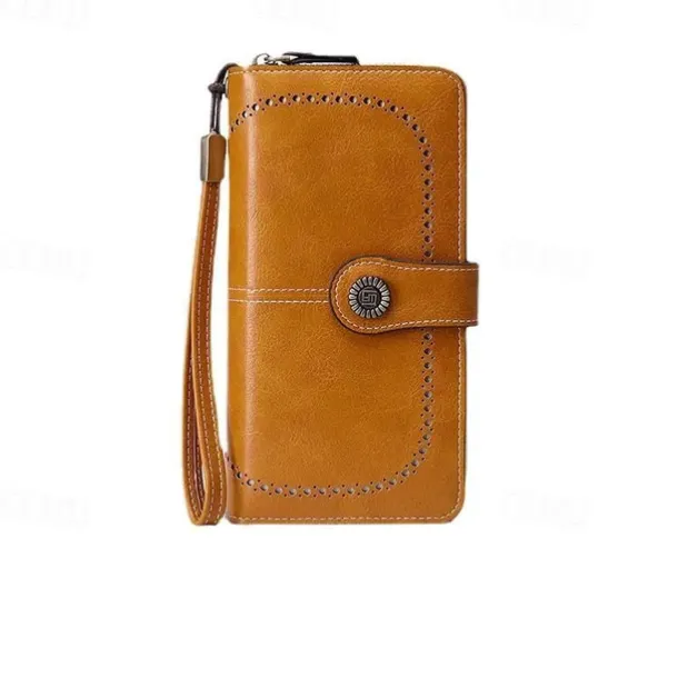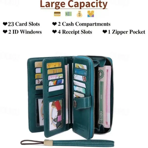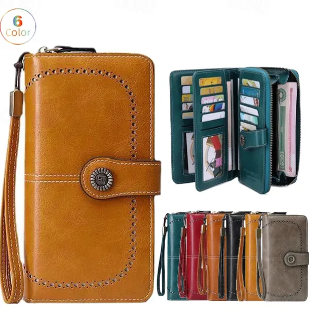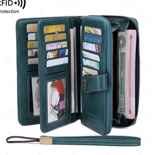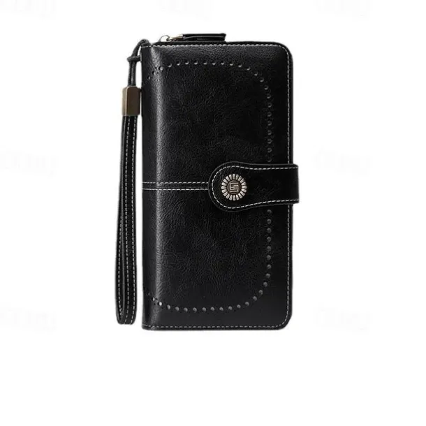 RFID Blocking Long Wallet With Wristlet, Retro Style Faux Leather Wallet With Multi Card Slots & Id Window