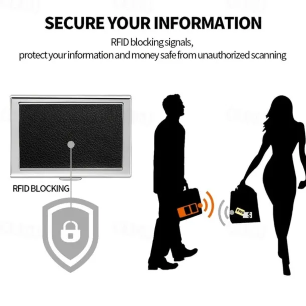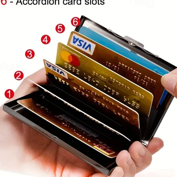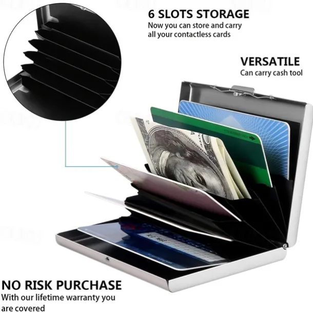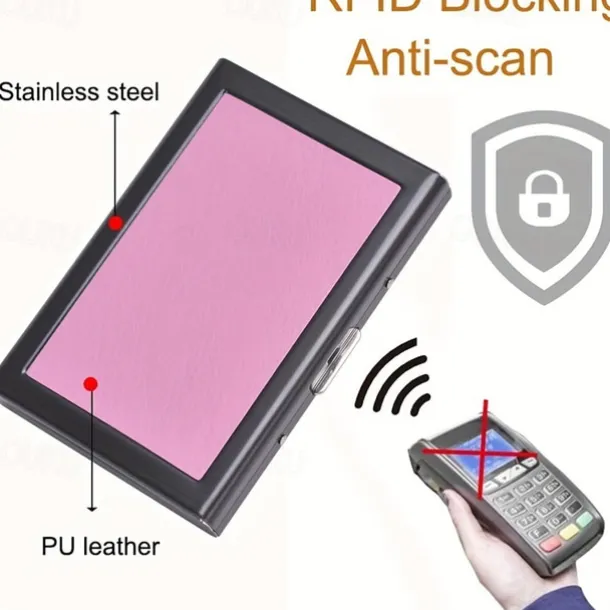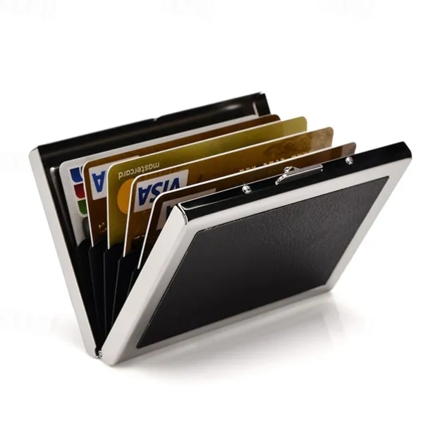 RFID Credit Card Holder Men Wallet Short Purse Stainless Steel And Leather Card Wallet