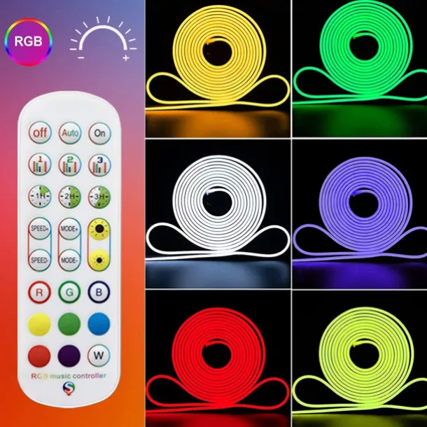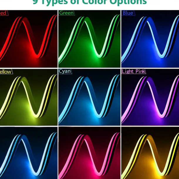 RGB Waterproof Smart Neon Rope Light Kit, Silicone LED Strip Lights 3M, 5M, or 2x5M Bluetooth App Control, Dimmable, Music Sync, Multi-Color, DIY Cuttable
