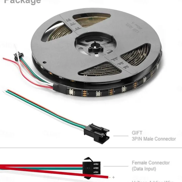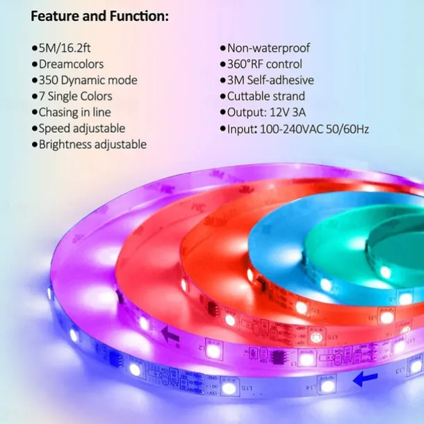 LED Beads Quantity: 150-300, Light Color: RGB, Multi Color, Power Supply: No Plug – DC12V, Plug, Type: Light Sets, Style: New Year’s, Christmas, Features: Cool, Waterproof, Party, TV Background, Tiktok LED Strip Lights, Individual Addressable, Quantity: 1 set, Voltage (V): 12, Initial Lumens (lm): 2000-4000, Length: 1x5M, 2x5M, Mode: IR Remote Control, LED Type: 5050 SMD, IP Rating: IP65, Length Range: 5~9m (16.4~29.5ft), 10~14m (32.8~45.9ft), Control Mode: Remote Control, Suitable Rooms: Dorm, Shape: Circle, What’s in the box: 12V4A Adapter, 1 X 12V 5A Power Supply, 1Set Mounting Bracket,