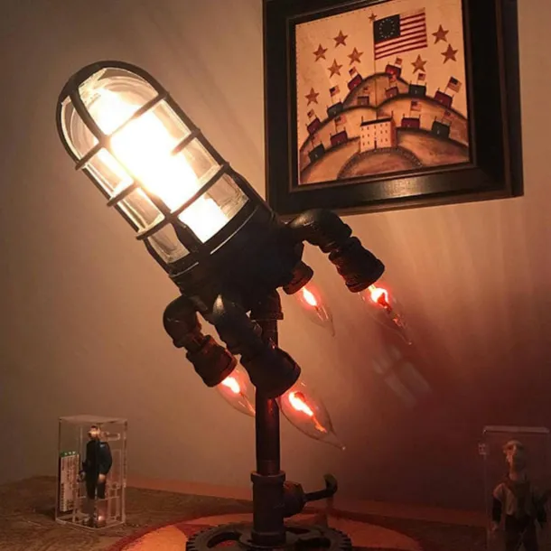 Rocket Lamp Hand Crafted Decorative Lamp Adjustable Brightness Steampunk Rocket Lamp Party Decoration 24cm 9.5inch