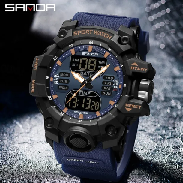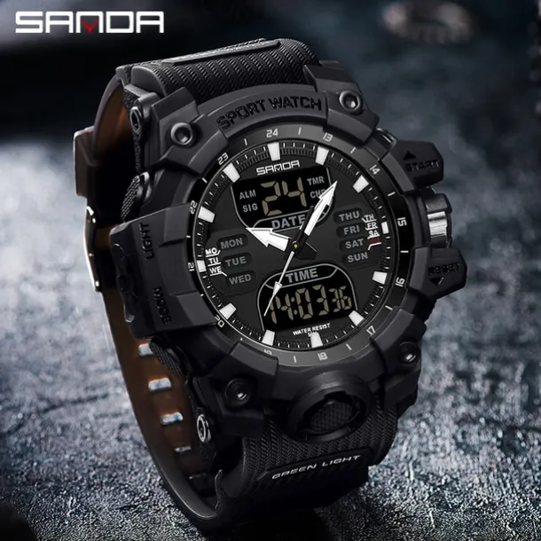 SANDA Men Digital Watch Outdoor Sports Fashion Business Luminous Alarm Clock Calendar Chronograph Silicone Watch