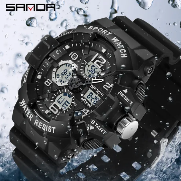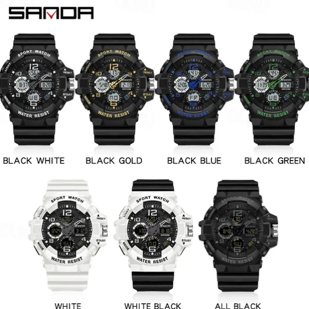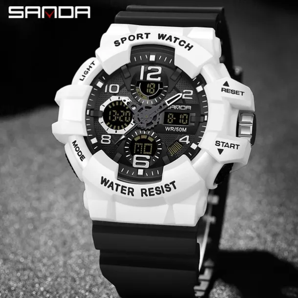SANDA Men Digital Watch Outdoor Sports Fashion Wristwatch Luminous Stopwatch Alarm Clock Calendar TPU Watch