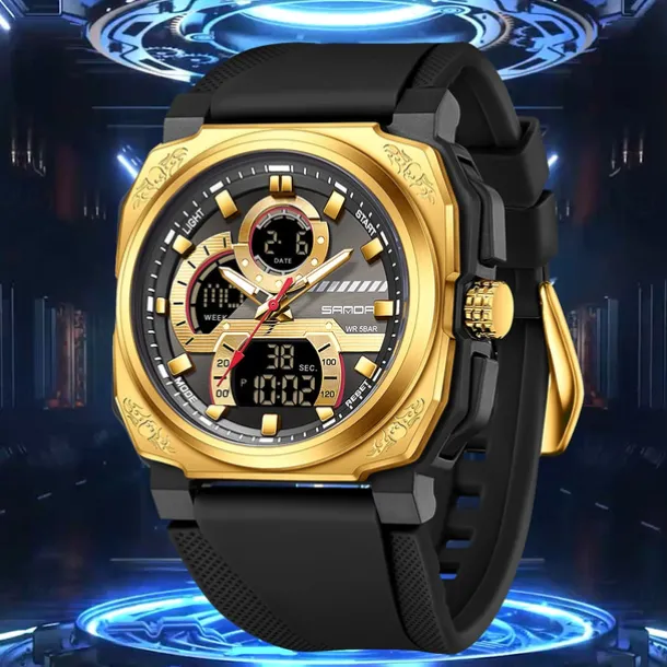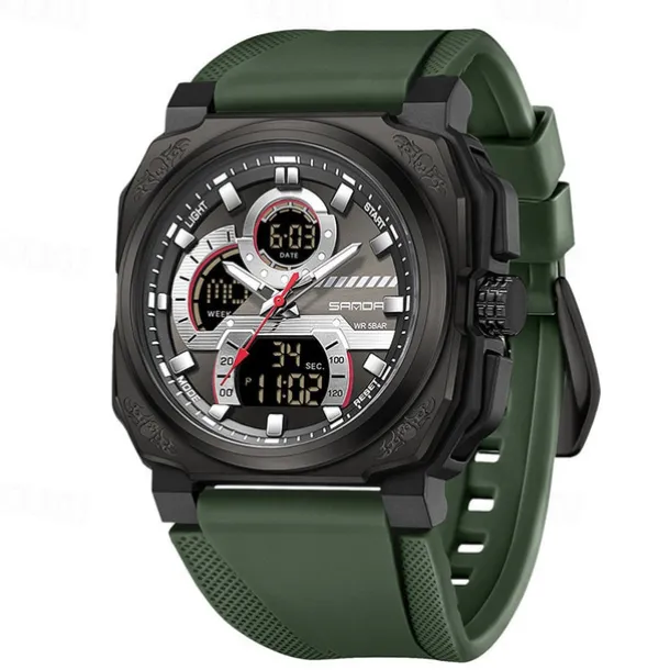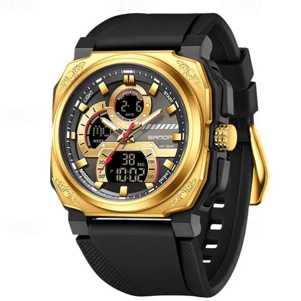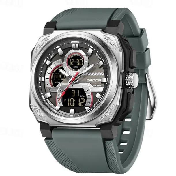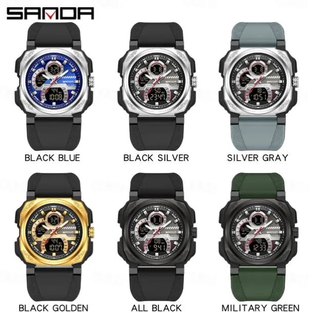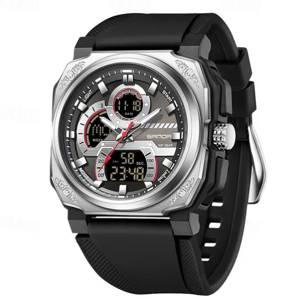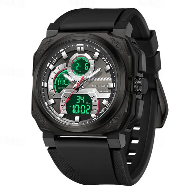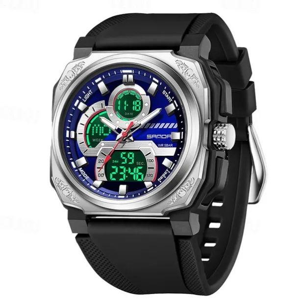 SANDA Men Digital Watch Sports Fashion Business Wristwatch Stopwatch Alarm Clock Countdown Three Time Zones Rubber Watch