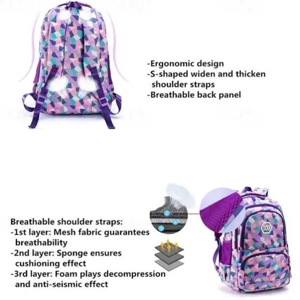 School Backpack Bookbag Multicolor for Student Boys Girls Multi-function Wear-Resistant Large Capacity Nylon School Bag Back Pack Satchel 21.5 inch