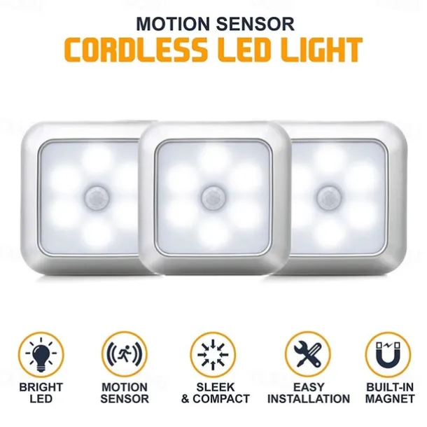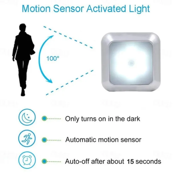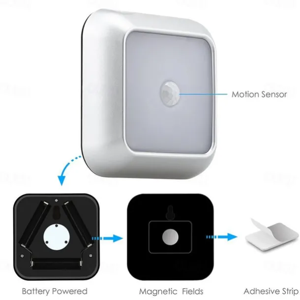 Material: ABS+PC, Type: Night Lights, Style: Christmas, New Year’s, Features: Motion Sensor, Shape: Square, Quantity: 1PC, Wattage (W): 3, Voltage (V): Batteries Powered, Batteries Included: No, IP Rating: IP44, Suitable Rooms: Not Specified, Laundry / Utility Room, Home Office, Kitchen, Bedroom, Living Room, Dimension (cm): 8*8*2, Control Mode: Body Sensor, CRI: >80, Light Color: White, Warm White,