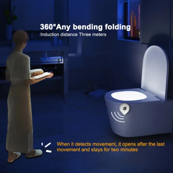 Sensor Toilet Seat Night Light Smart PIR Motion 8 Colors Waterproof Backlight 2PCS for Toilet Bowl LED Luminaria Lamp Toilet Light
