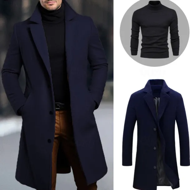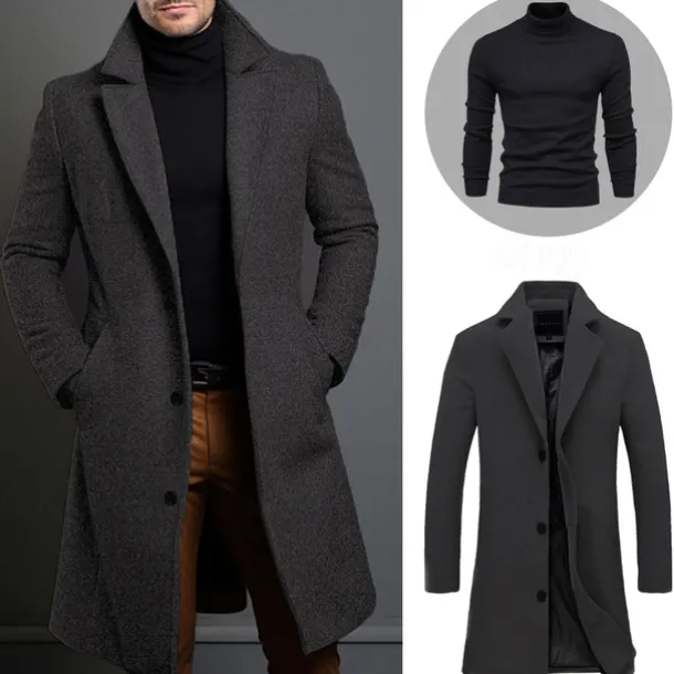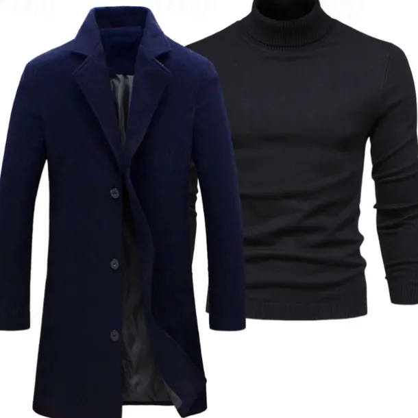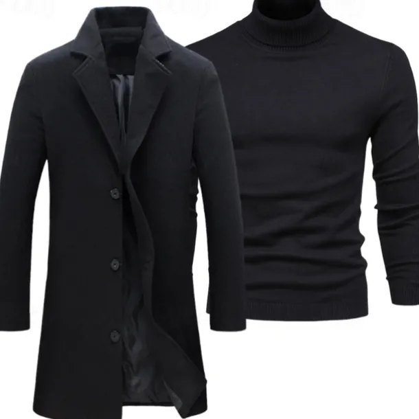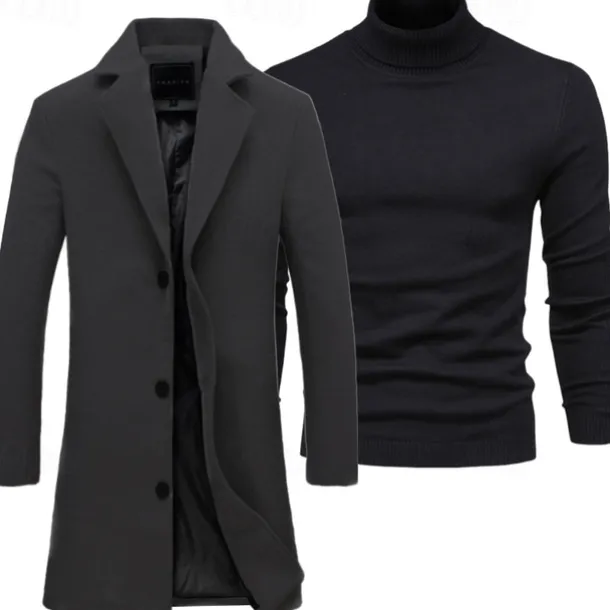 Set with Trench Coat Pullover Men’s 2 PCS Outfits Winter Coat Overcoat Daily Wear Winter Thermal Warm Windproof Outerwear Clothing Apparel Fashion Warm Ups Plain Pocket Lapel Single Breasted