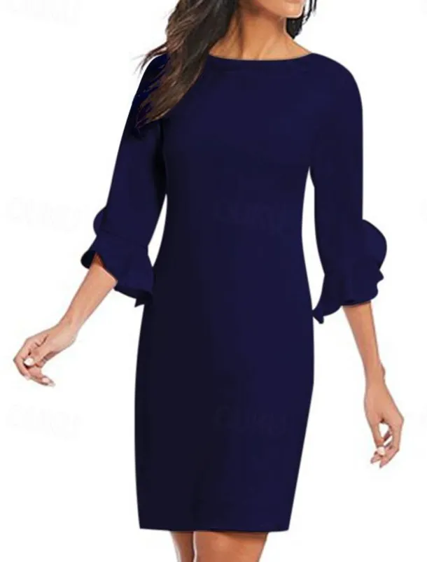 Be the first to review “Sheath Cocktail Dresses Minimalist Dress Cocktail Party Knee Length 3/4 Length Sleeve Jewel Neck Fall Wedding Guest Chiffon with Ruffles Dresses” Cancel reply