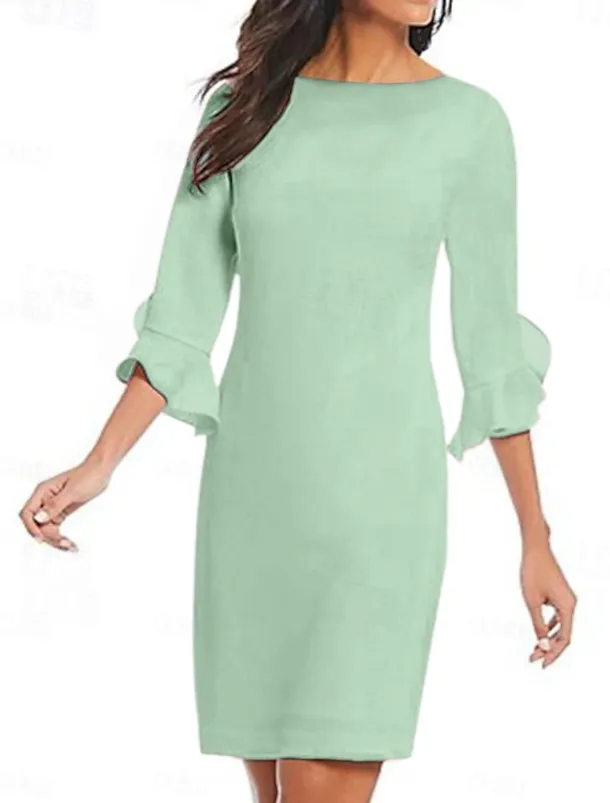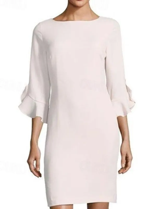 Sheath Cocktail Dresses Minimalist Dress Cocktail Party Knee Length 3/4 Length Sleeve Jewel Neck Fall Wedding Guest Chiffon with Ruffles Dresses