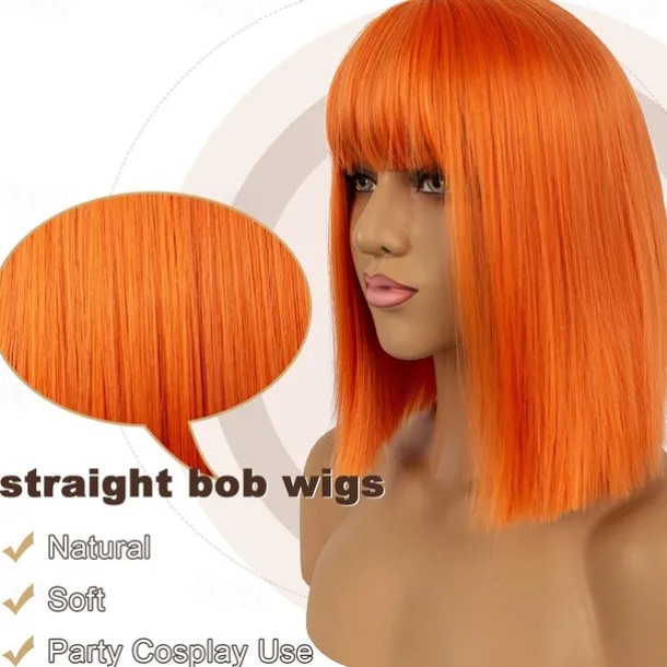 Short Bob Wigs with Bangs for Women Synthetic Straight Hair Bob Cut Wig Shoulder Length Fashion Bob Cosplay Wig for Girl Colorful Costume Wigs Halloween Wigs