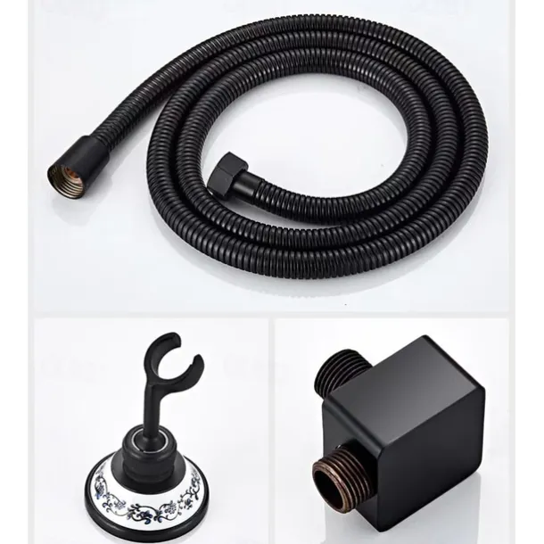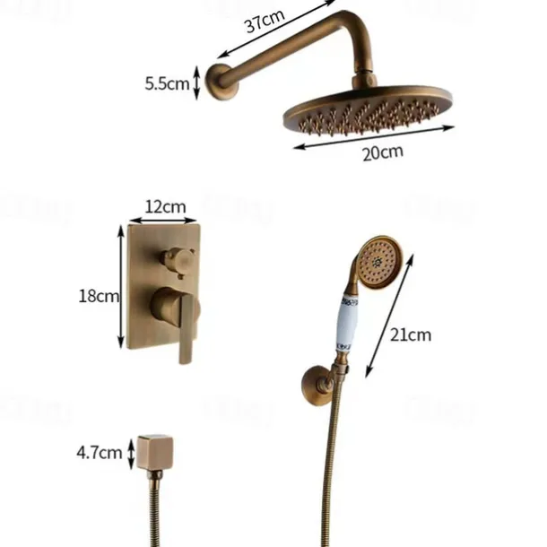 Shower Faucet Set Wall Mounted Vintage Brass, Rainfall Overhead Combo Set Bathroom Mixer Ceramic Shower Hendheld Sprayer High Pressure Black Antique