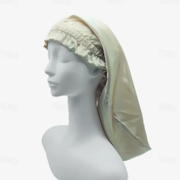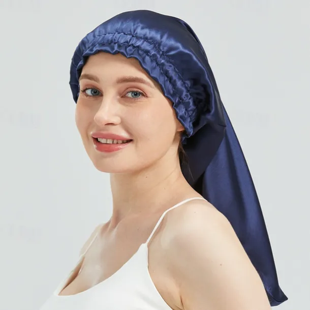 Silk Long Elastic Band Long Hair Sleeping Cap Breathable Windproof Warm Silk Mulberry Silk Elastic Hair Cap Hat