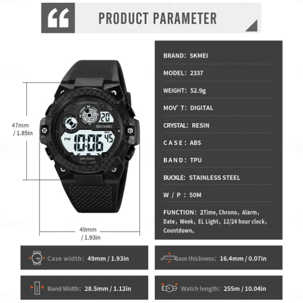 SKMEI 2337 Digital Watch For Man Luxury Waterproof Sport Wristwatch Stopwatch Electronic Movement Men’s Watch