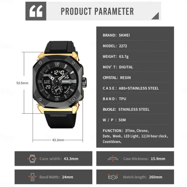 SKMEI Men Digital Watch Outdoor Sports Fashion Casual Luminous Stopwatch Alarm Clock Countdown TPU Watch