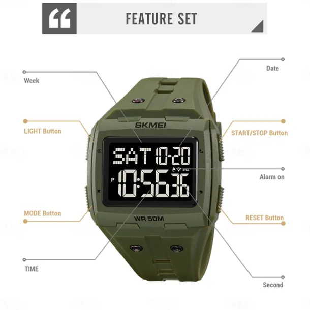 SKMEI Men Digital Watch Outdoor Sports Fashion Wristwatch Luminous Stopwatch Alarm Clock Countdown TPU Watch