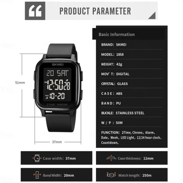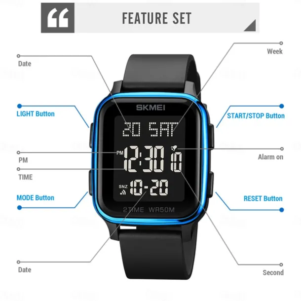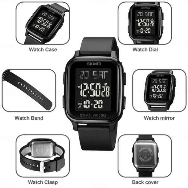SKMEI Men Digital Watch Outdoor Sports Fashion Wristwatch Luminous Stopwatch Alarm Clock Countdown TPU Watch