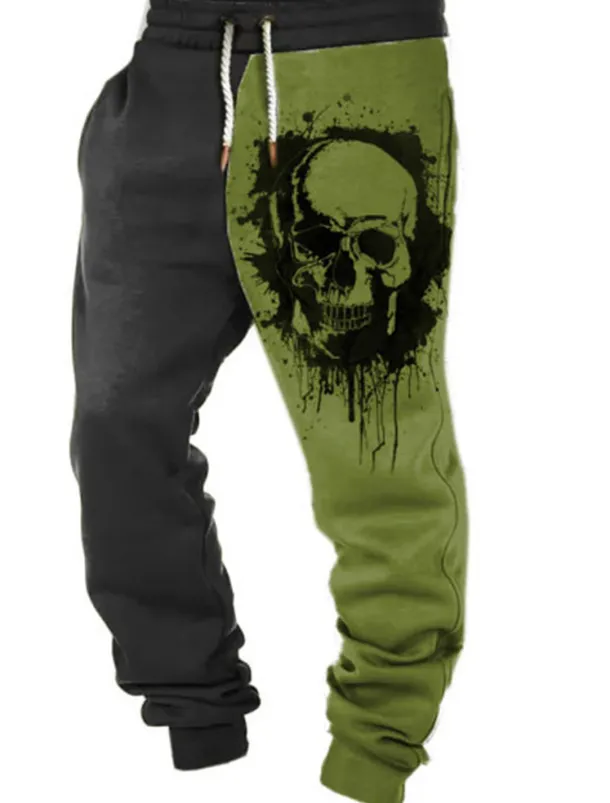 Skull Gothic Men’s 3D Print Sweatpants Joggers Pants Trousers Halloween Street Halloween Polyester White Orange Green S M L Mid Waist Elasticity Pants