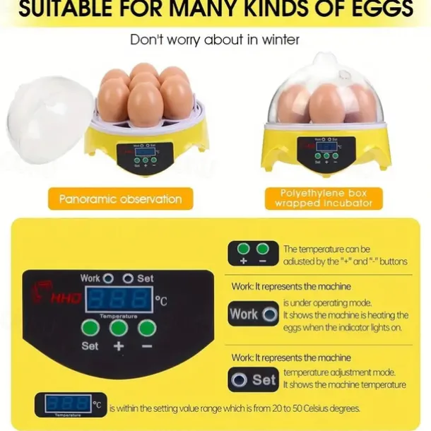 Small Family Use Egg Incubator Automatic Temperature Control Intelligent Incubator 7-egg Capacity Suitable for Chickens Ducks Turtles Birds