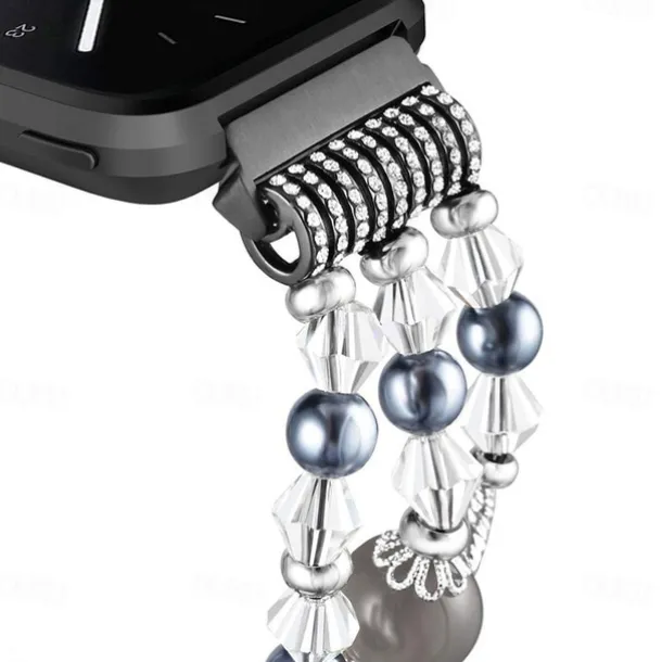 Smart Watch Band Compatible with Fitbit Versa 2 / Versa Lite / Versa SE / Versa Alloy Beaded Smartwatch Strap Bling Diamond Beaded Women Men Jewelry Bracelet Replacement Wristband