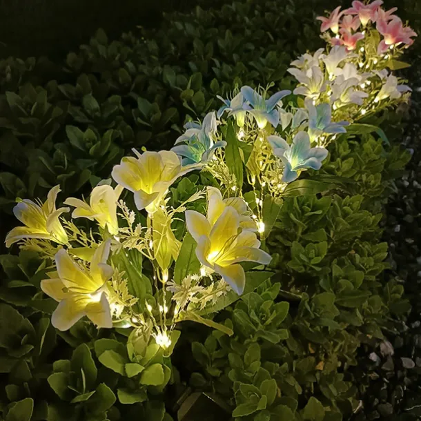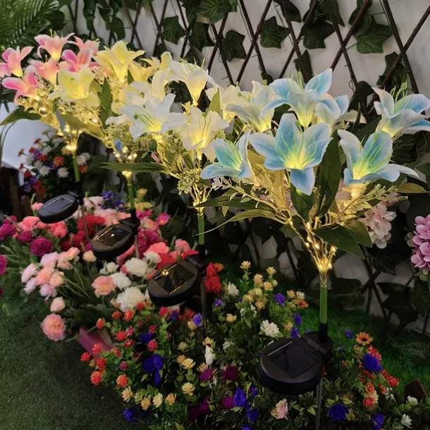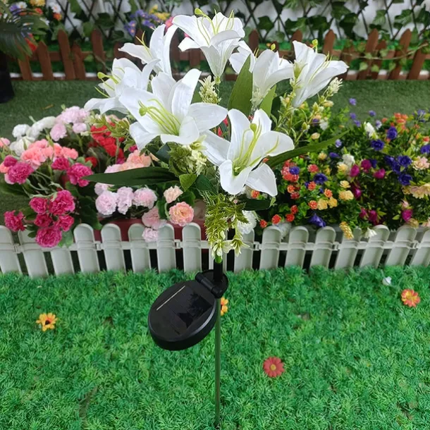 Solar Lily Outdoor Simulation Flower Lamp LED Artificial Flower Floor Insertion Lamp Garden and Courtyard Decorative Lights Holiday Party Decorative Lights