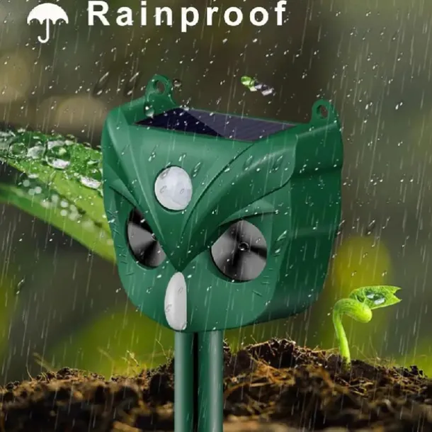 Solar Ultrasonic Animal Repeller – Motion Activated Waterproof Deterrent with Flashing LED Light for Cats Dogs Squirrels in Gardens