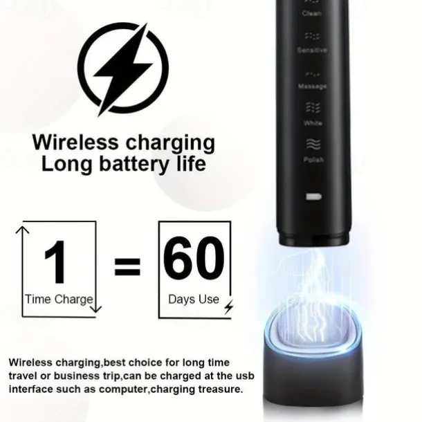 Sonic Electric Toothbrush Wireless Charging 5 Brushing Modes With Travel Box Brush Head Dust Cover 3 Replacement Soft Bristle Brush Heads