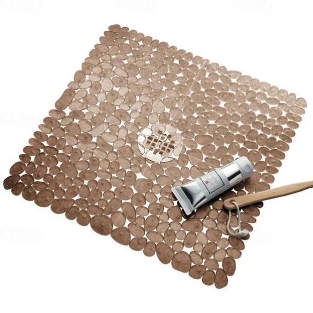 Square Bath Mat Non-slip Shower Mats – 21 x 21 inch Non Slip Bathtub Mat with Suction Cup, Safety Shower Stall Mats for Kids & Elderly, Shower Mat with Drain Holes, Machine Washable