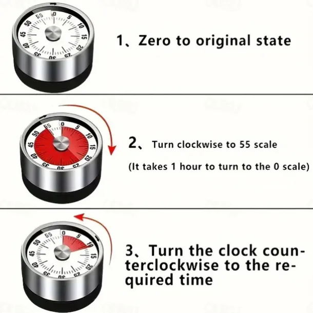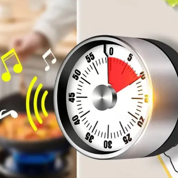 Stainless Steel Mechanical Kitchen Cooking Timer Magnet Round Shape 60 Minutes Countdown Cooking Clock Alarm Time Reminder