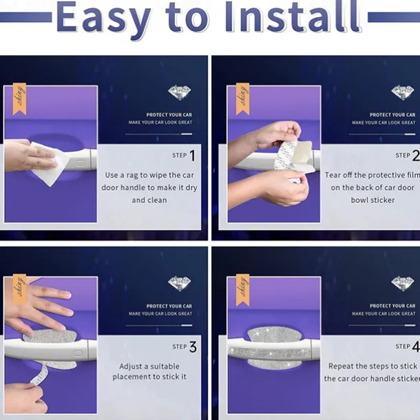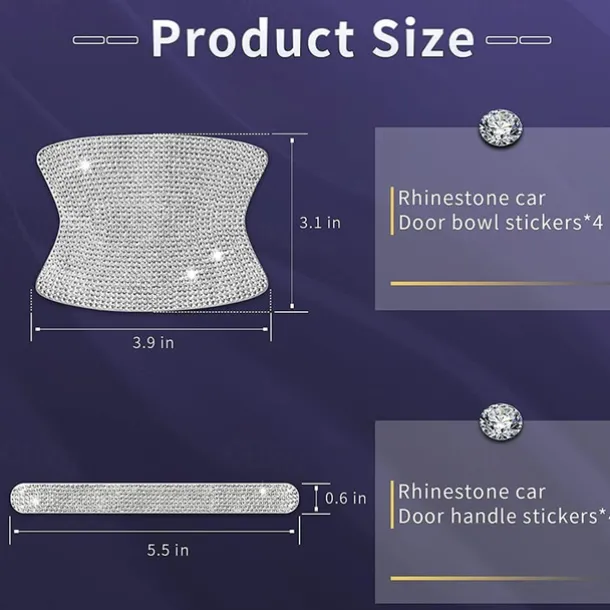 StarFire 1/2/4PCS Rhinestone Car Door Handle Stickers – Bling Car Accessories Crystal Glitter Door Handle Protector Stickers and Decals Scratch Safety Reflective Auto Sticker for Woman &amp Man