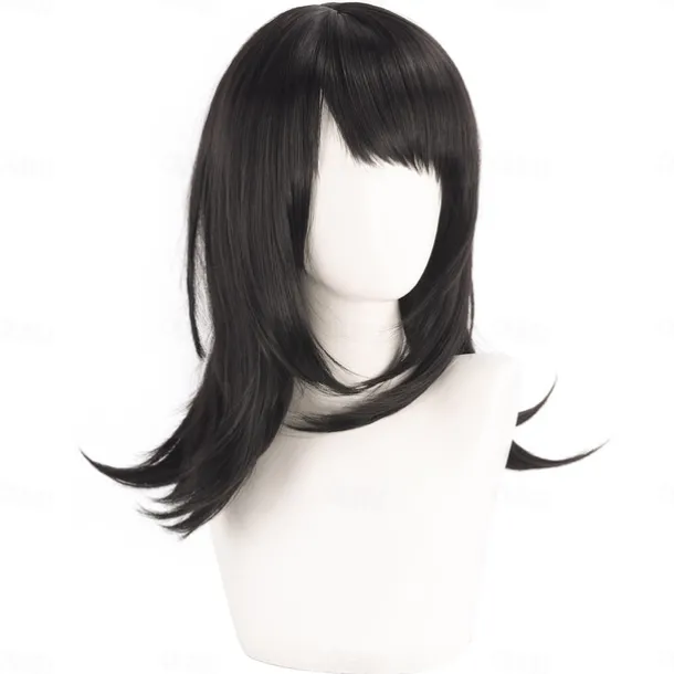 Synthetic Wig 八幡海铃 Micro Locs Natural Straight Layered Haircut Neat Bang Machine Made Wig 20 inch 6 inch A1 Synthetic Hair Women’s Soft Classic Comfortable Black