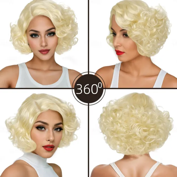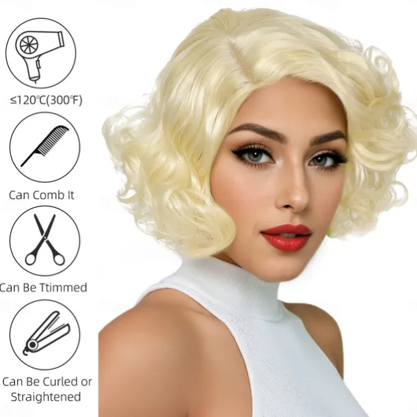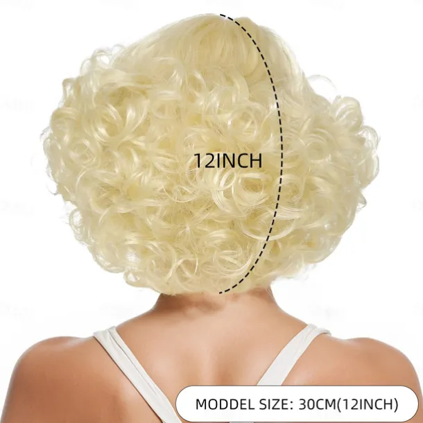 Synthetic Wig Curly Wavy Asymmetrical Neat Bang Machine Made Wig 12 inch A1 Synthetic Hair Women’s Classic Comfortable Color Gradient Blonde Halloween Wigs