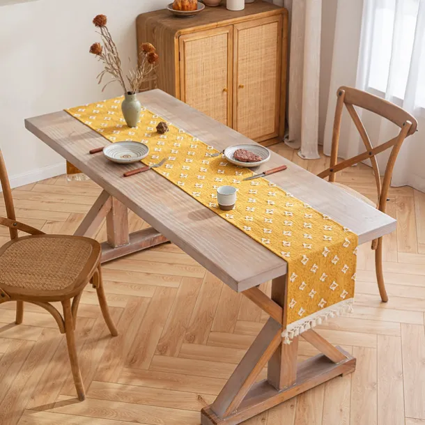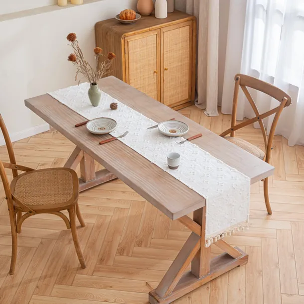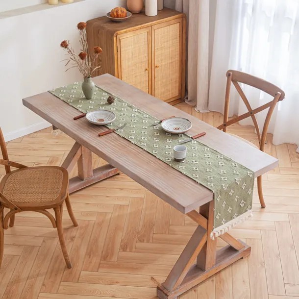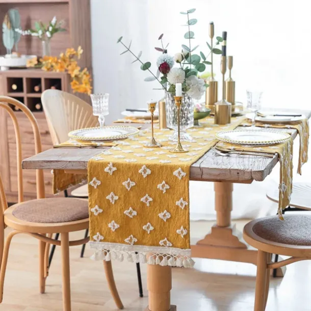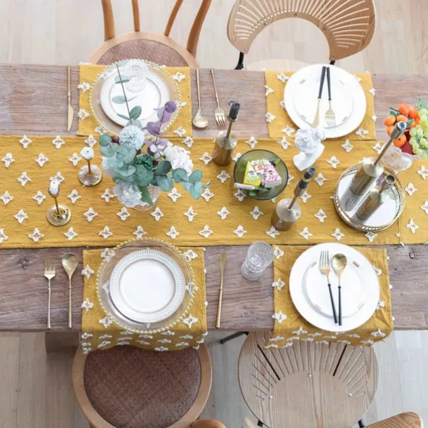 Table Runner with Tassels Spring Star Applique Vintage French Country Farmhouse Double-layer Polyester