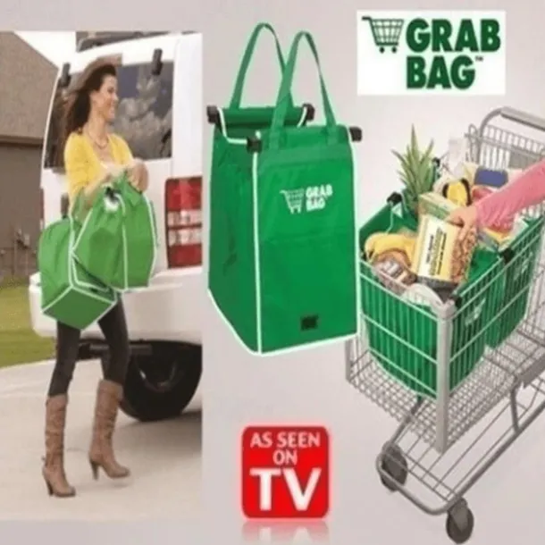 Thickened Green Supermarket Cart Shopping Bag Storage Fabric Bag Non Woven Handbag Tv Product Grab Bag