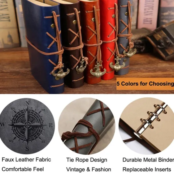 Travel Journal Notebooks Vintage PU Leather Note Book Quality Paper No Lines Thick and Smooth to Write in A6 Refillable Notebook 7 by 5 Inches 80 Sheets, Back to School Gift