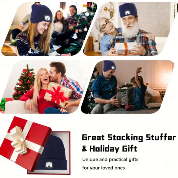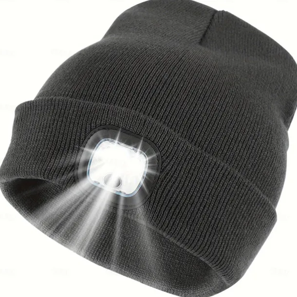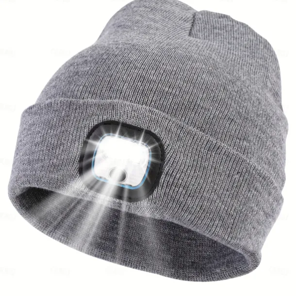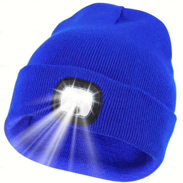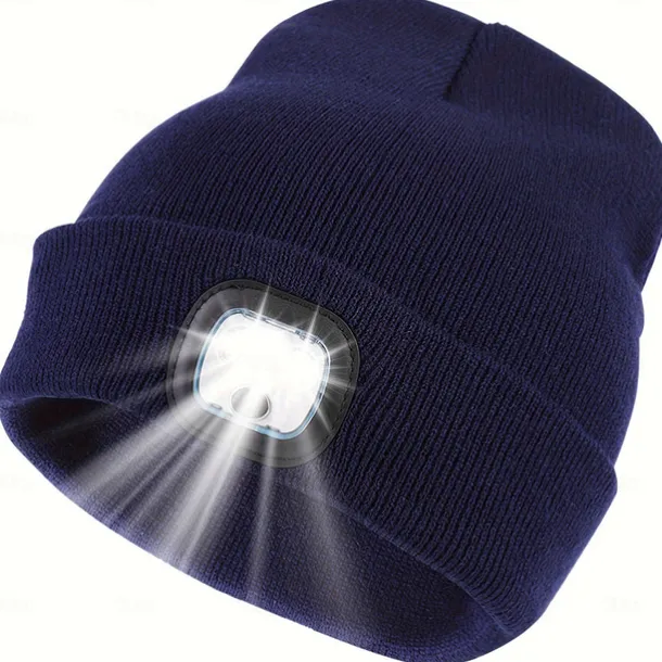 Upgraded USB Rechargeable LED Light-Up Winter Knit Cap – High Brightness, Long-Lasting Battery, 9 Colors (Black/Grey/Blue/Yellow/Orange/Pink/Green/Red/Navy) for Night Walking, Camping, Fishing