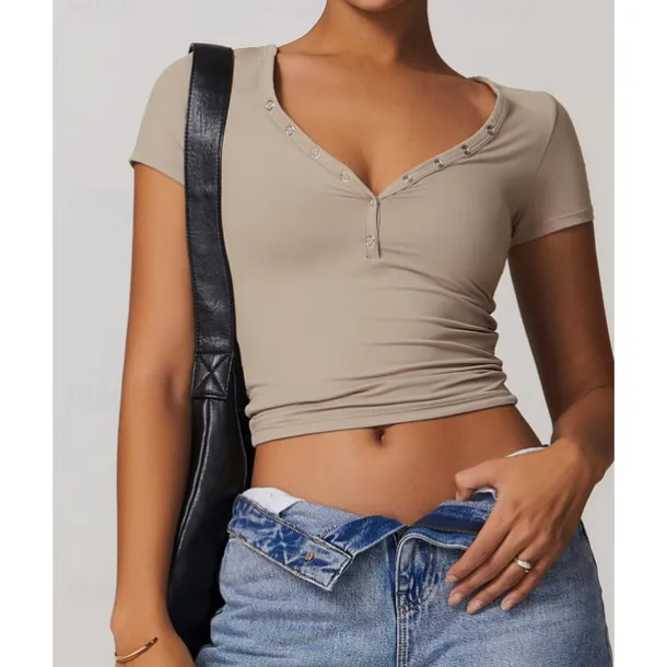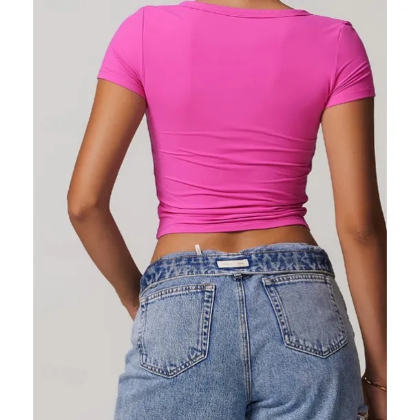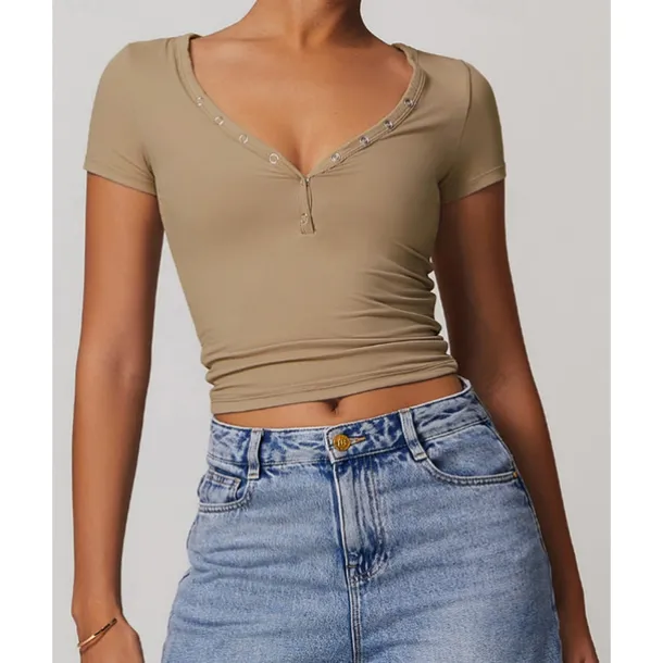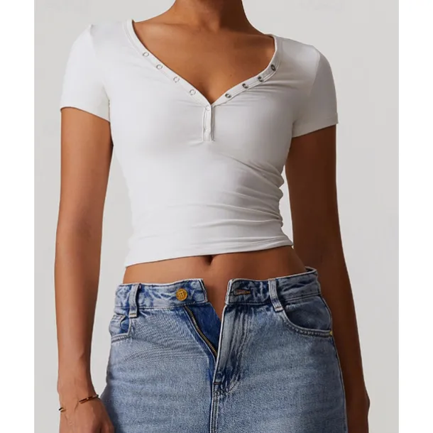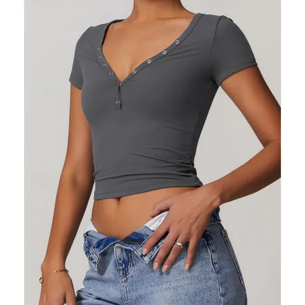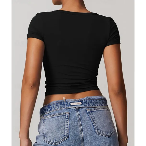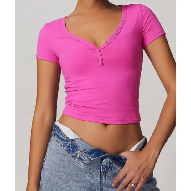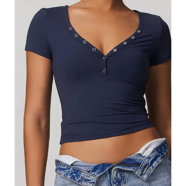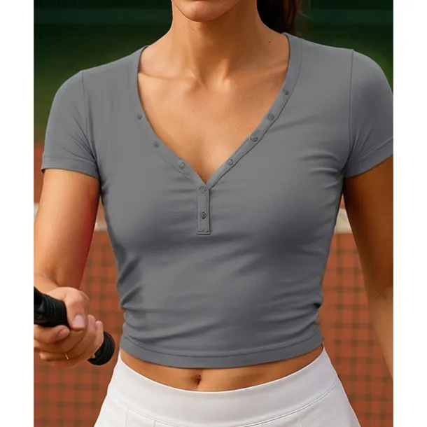 US Open Women’s Solid Colored Tennis Top Short Sleeve Buttons Breathable Tennis Pickleball V Neck Top Black White Dark Navy Tennis Clothing