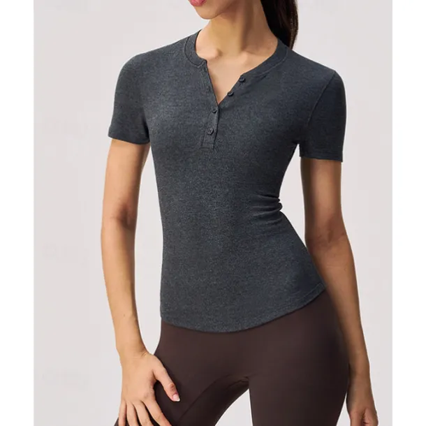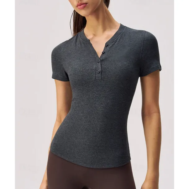 US Open Women’s Solid Colored Tennis Tops Short Sleeve Buttons Moisture Wicking Tennis Pickleball V Neck Top Black White Blue Tennis Clothing