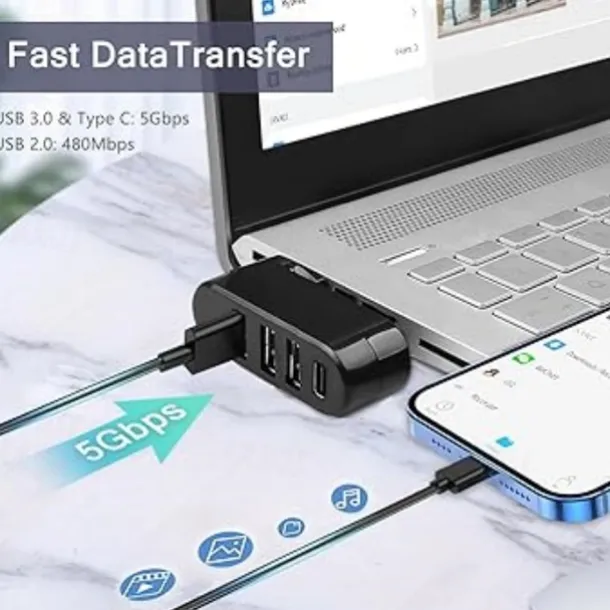 USB 3.0 Hub 4 Ports USB Splitter Extender Multi-Port Adapter with 3 USB Ports & 1 USB C Power/Data Port for Laptop