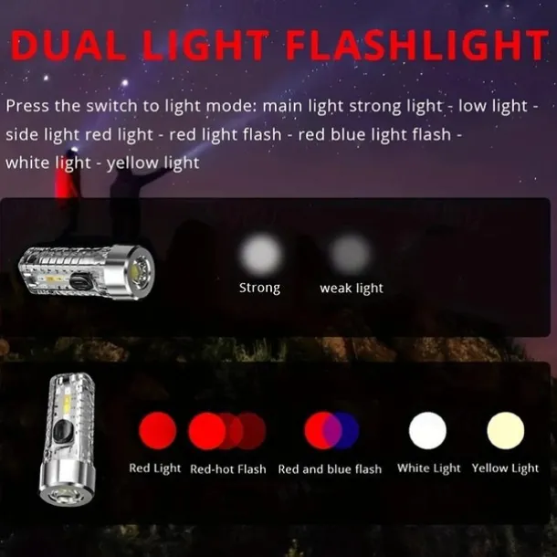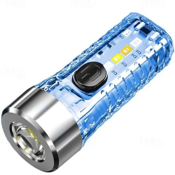 USB Rechargeable Mini Keychain Flashlight with Multicolor Side Lights – 7 Lighting Modes for Camping and Emergencies