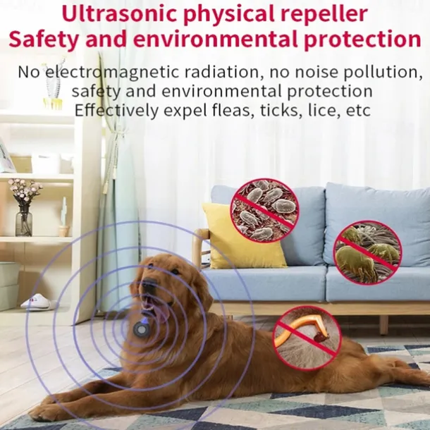USB Rechargeable Ultrasonic Pest Collar – Flea, Tick, and Lice Repeller for Cats and Dogs with Mountaineering Buckle