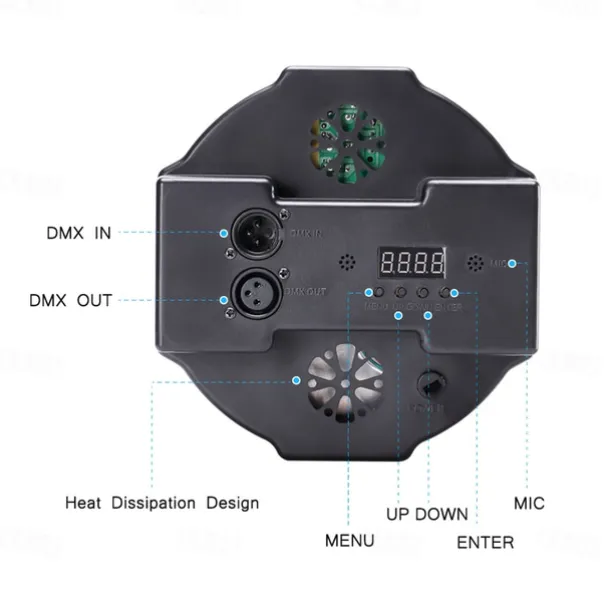 – Multiple modes including Master/Slave, DMX 512, Sound Activated, Strobe, and Auto