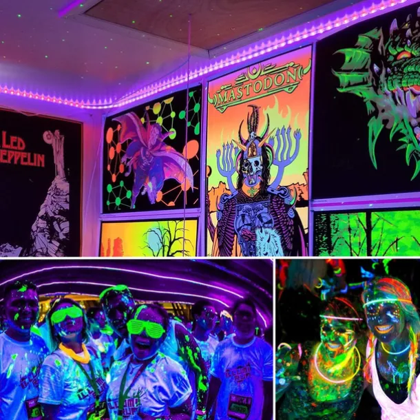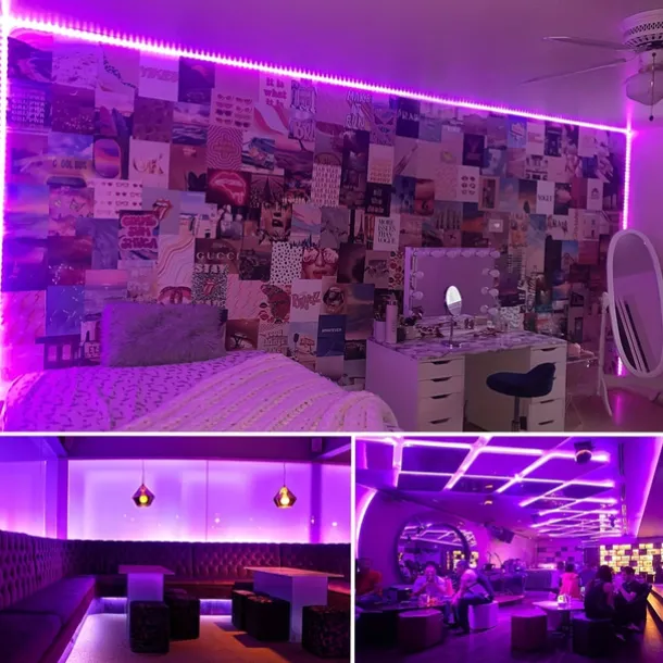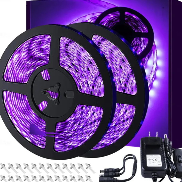 UV Purple LED Light Strip Kit – 5-10M Flexible 12V Warm White Tape Light Black Light for Party, Bar & Decoration