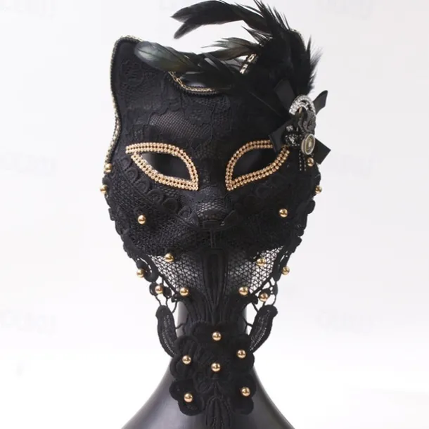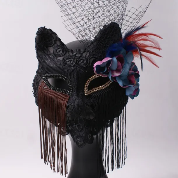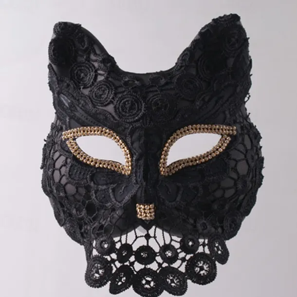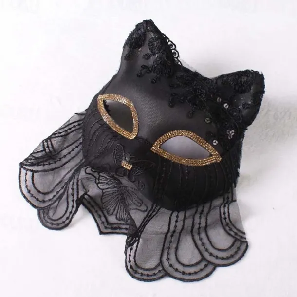 Venice Carnival Cat Mask Black Masquerade Graduation Party Accessories Women Elegant Halloween Cosplay Masks