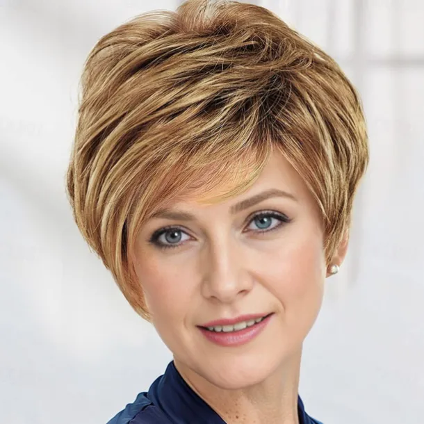 Victoria WhisperLite Wig Edgy Short Pixie Wig with An Asymmetrical Fringe and Rich Feathery Layers / Multi-tonal Shades of Blonde Silver Brown and Red