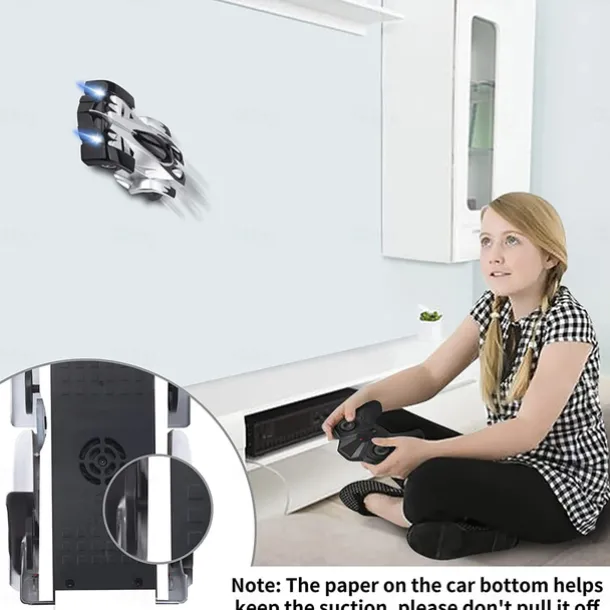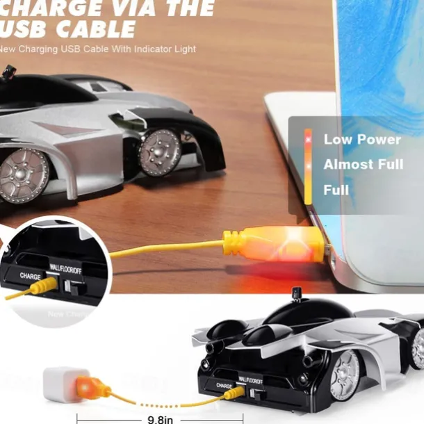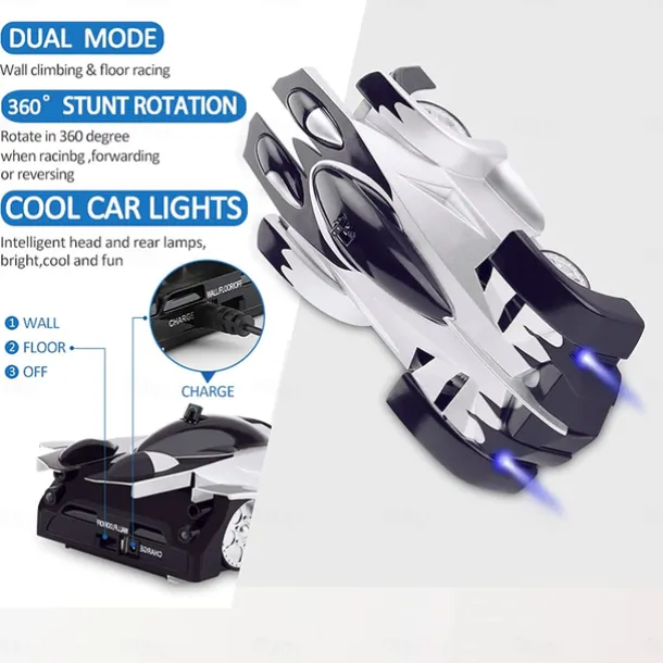 【”Wall/Floor” Dual-Mode RC Cars】- This novel remote control car with aerodynamic design has “Wall/Floor” Dual Modes, it can climb steadily on the ground, smooth walls, mirrors, windows, and even on the ceiling. Note: Not Suitable for Textured Walls.